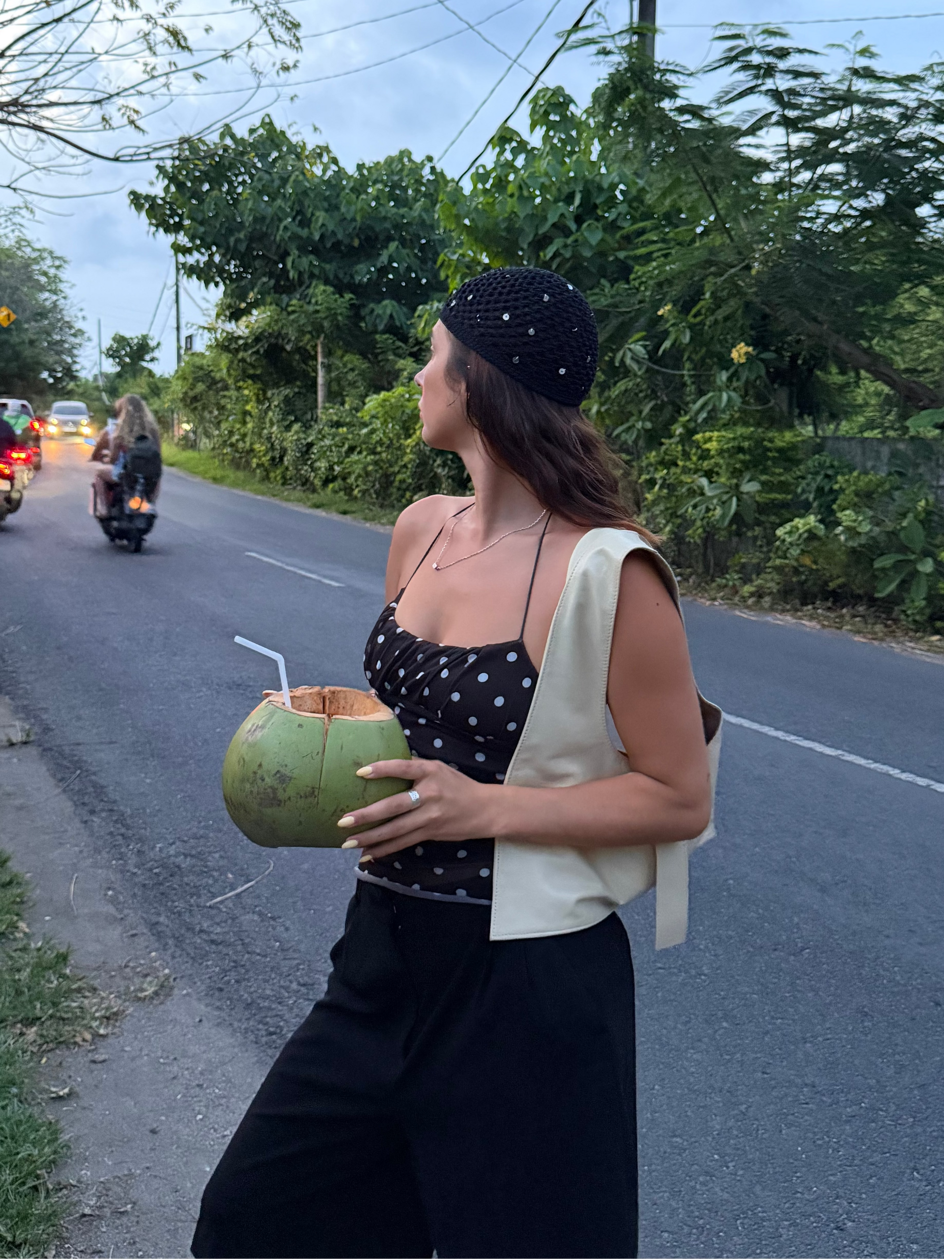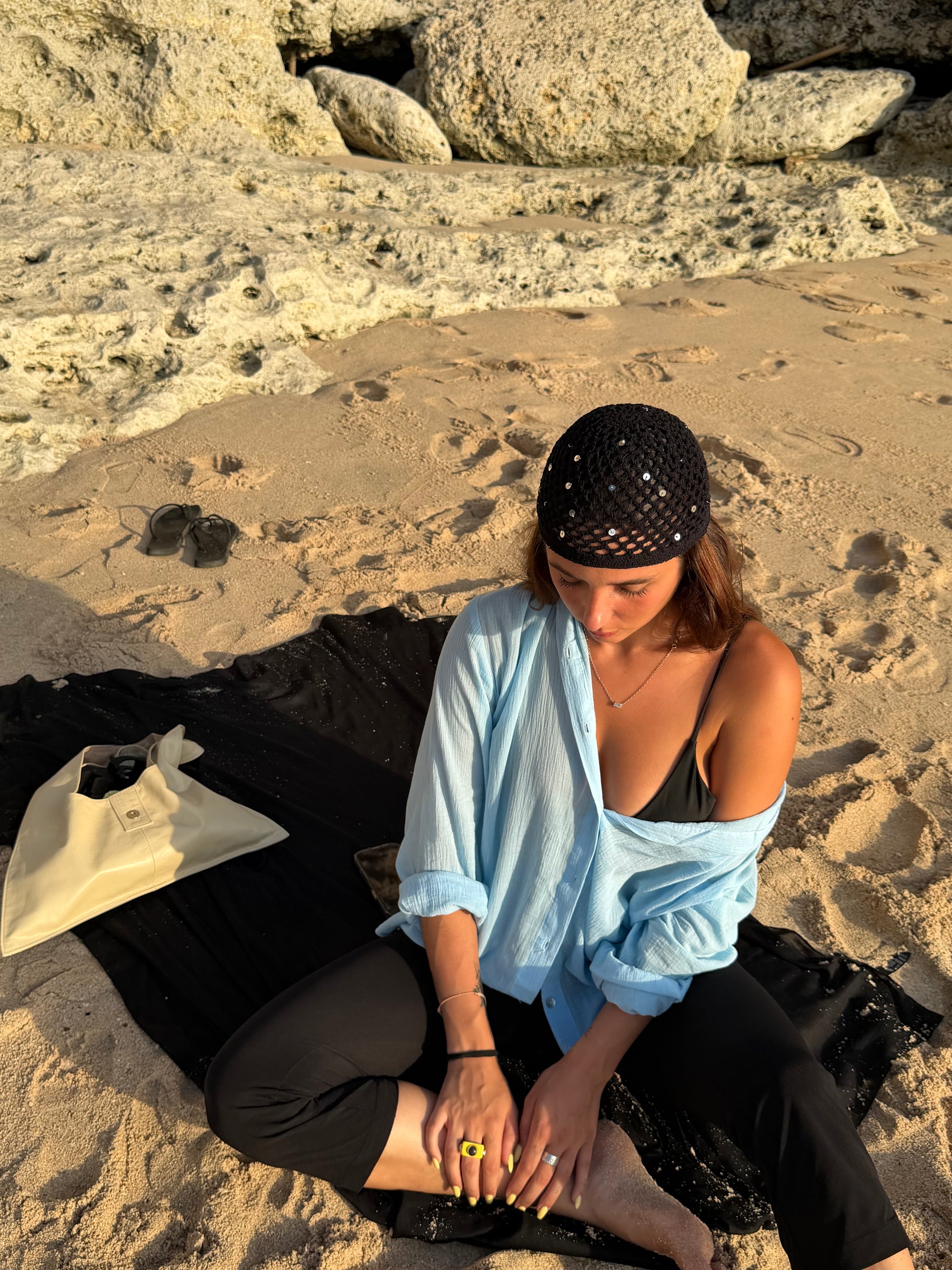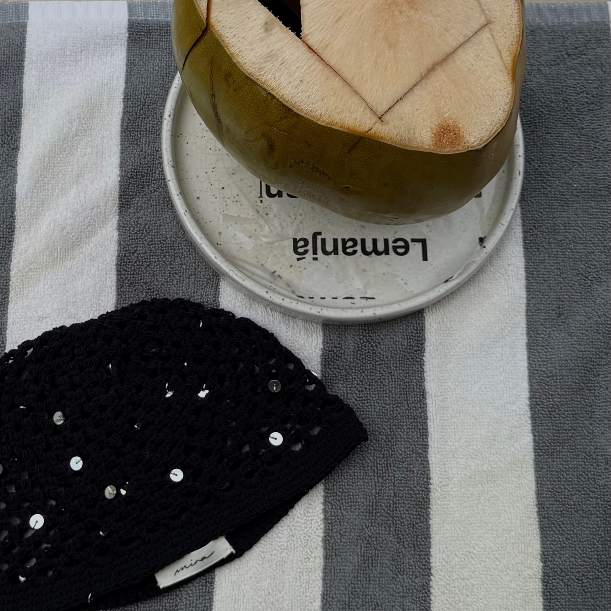 Cyra evokes the softness of silver constellations in the night sky. This black bonnet, hand-crafted and adorned with silver sequins, combines refinement, character, and subtle sparkle. Simply, a star to wear.