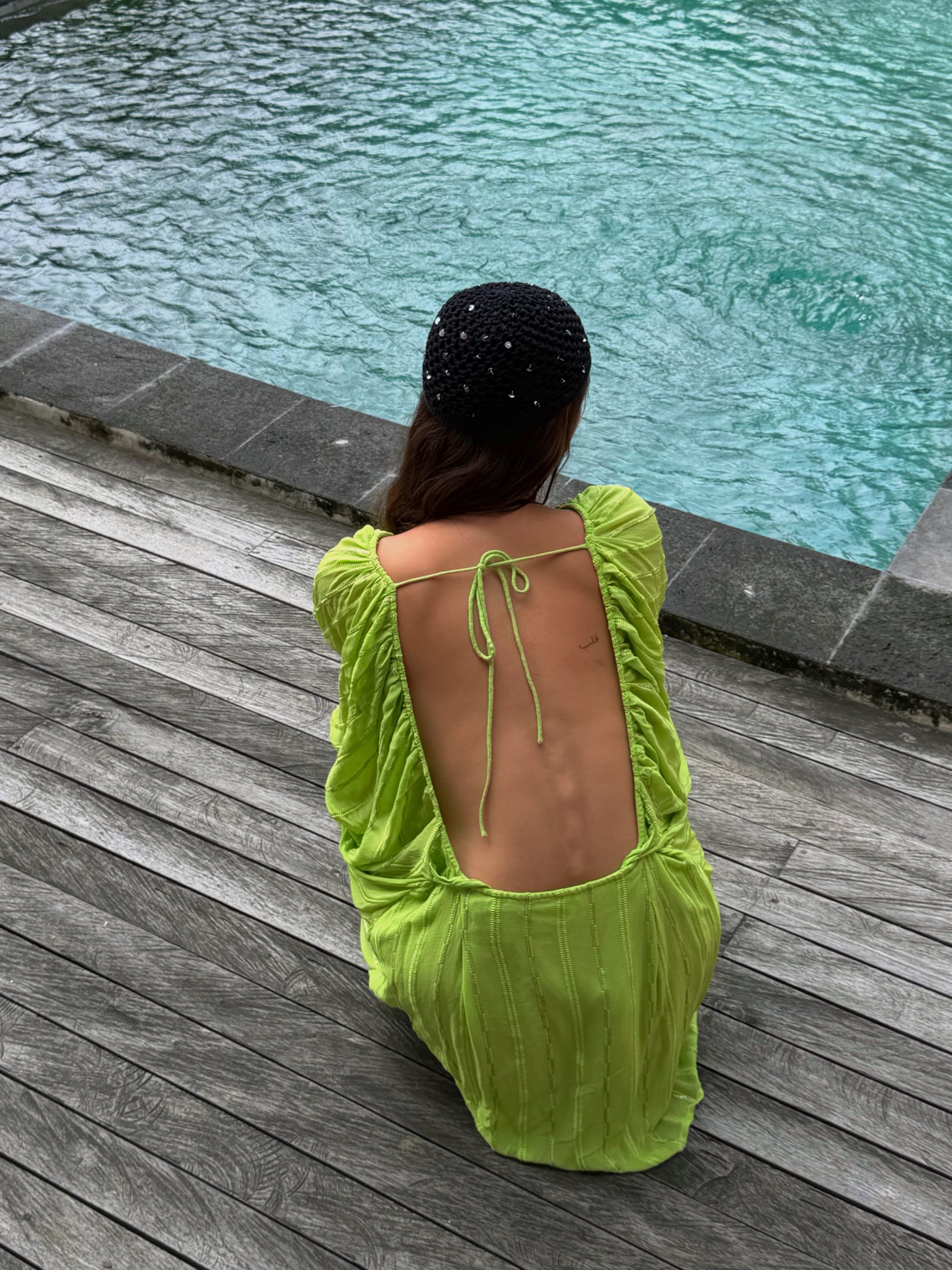 Cyra évoque la douceur des constellations argentées dans le ciel nocturne. Ce bonnet noir, orné de sequins argentés et fabriqué à la main, mêle raffinement, caractère et éclat subtil. Une étoile à porter, tout simplement.